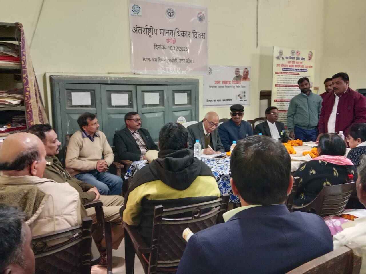 ज्ञानपुर! भदोही । श्रम विभाग और मानव संसाधन एवं महिला विकास संस्थान तथा न्याय नेटवर्क के संयुक्त रूप से कार्यशाला का आयोजन किया गया जिसमे पूर्व जिला जज टी एन पाण्डे, बाल कल्याण अधिकारी पी सी उपाध्याय, ए एच टी यू प्रभारी इंद्र बहादुर यादव,श्रम विभाग के श्रम प्रवर्तन अधिकारी मनोज शर्मा तथा इंद्रजीत तिवारी ने इस बैठक की शुरुआत करते हुए आए सभी लोगो का स्वागत किए जिसमे पूर्व जिला जज ने बताया कि हम सभी लोगो के एक साथ मिलकर अपने गरीब , मजदूर की लड़ाई लड़नी होगी, इसी कड़ी में बाल कल्याण समिति के अध्यक्ष पी सी उपाध्याय बताए कि सभी लोगों का समान अधिकार है जिसमे सभी लोगो का समान नागरिकता मिलना चाहिए तथा समय समय पर जो नजदीकी विद्यालय है उसमें गैर सरकारी संगठन के लोग और सरकारी संगठन लोग मिलकर नजदीकी विद्यालय में नामांकन कराए जिससे बाल श्रम कम हो इसी क्रम में श्रम प्रवर्तन अधिकारी मनोज शर्मा ने बताया कि जिले में सभी जगह पर जैसे कालीन कारखाने , प्रतिष्ठानों में छापेमारी का कार्य किया जाता है जिसमे हमारे साथ ए एच टी यू, टास्क फोर्स सदस्य के साथी रहते है