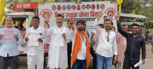 वैश्य रक्षक सेना बिहार की अगुवाई में पांच सूत्री मांगों को लेकर गुरुवार को भभुआ के एकता चौक से रवाना हुआ वैश्य रथ राजधानी पटना के गर्दनी बाग धरना स्थल पर पहुंच सभा में तब्दील हो गया।दसवां व अंतिम दिन सभा को संबोधित करते हुवे सेना प्रमुख विश्वनाथ प्रसाद गुप्ता ने अपनी पांच सूत्री मांगों को जायज बताते हुवे इसकी अनसुना करने वाली एनडीए सरकार को कोसा और सरकार को चेतावनी दी कि वैश्य समाज के स्पोर्ट से सरकार चल रही है।अगर आगामी विधान सभा चुनाव से पहले हमारी मांग पूरी नहीं की गई तो सरकार को पुनः सत्ता में आने से रोकने के लिए मुझे विवश होना पड़ेगा।प्रदेश अध्यक्ष कृष्ण कुमार जायसवाल ने कहा कि हम एनडीए के बेस वोटर है,अगर मेरी मांग पूरी नहीं हुई तो हम आगामी विधान सभा चुनाव में सरकार को सबक सिखाएंगे।संरक्षक अनिरुद्ध गुप्ता ने कहा कि अपनी सुरक्षा एवं अधिकार के लिए वैश्य व्यवसायियों को दुकान छोड़कर इस मुहिम से जुड़ना होगा,तथा मांगे पूरी होने तक संघर्ष जारी रखना होगा।मुद्रिका जायसवाल,रामचंद्र जायसवाल ने भी सभा को संबोधित करते हुवे सरकार को घेरा।इसके बाद धरना स्थल पर प्रतिनियुक्त मजिस्ट्रेट के माध्यम से महामहिम राज्यपाल एवं मुख्य मंत्री को ज्ञापन सौंपा।तथा ज्ञापन के माध्यम से प्रदेश अध्यक्ष ने सरकार को एक सप्ताह का समय देते हुवे चेताया कि मांग नहीं मानी गई तो पूरे बिहार में आंदोलन किया जाएगा।